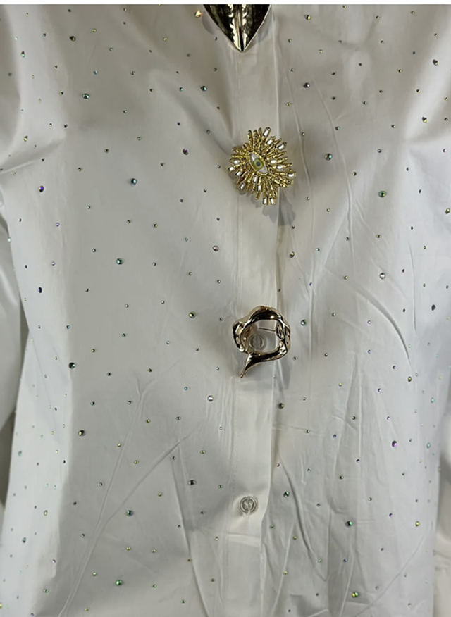 ✨ Glitzer-Bluse mit abnehmbaren Schmuck-Broschen