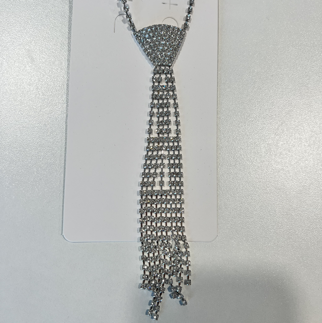 Ausgefallene Glitzerkette im Krawatten-Style. Krawatte besteht aus Glitzersteinchen. Kette ist verstellbar. Entweder so oder unter Blusenkragen tragbar - auf jeden Fall ein Hingucker…😳