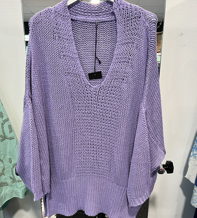 Luftiger Strickpullover mit grobem Maschenbild, tiefem V-Ausschnitt und praktischen Seitenschlitzen für mehr Bewegungsfreiheit und einen lockeren Fall. Der lockere Schnitt sorgt für Komfort und eine moderne Silhouette. Perfekt für die Übergangszeit oder entspannte Tage, lässt sich der Pullover vielseitig kombinieren. Erhältlich in frischen Farben wie Pink, Grün, Blau und Flieder – ein absoluter Allrounder für jeden Kleiderschrank.