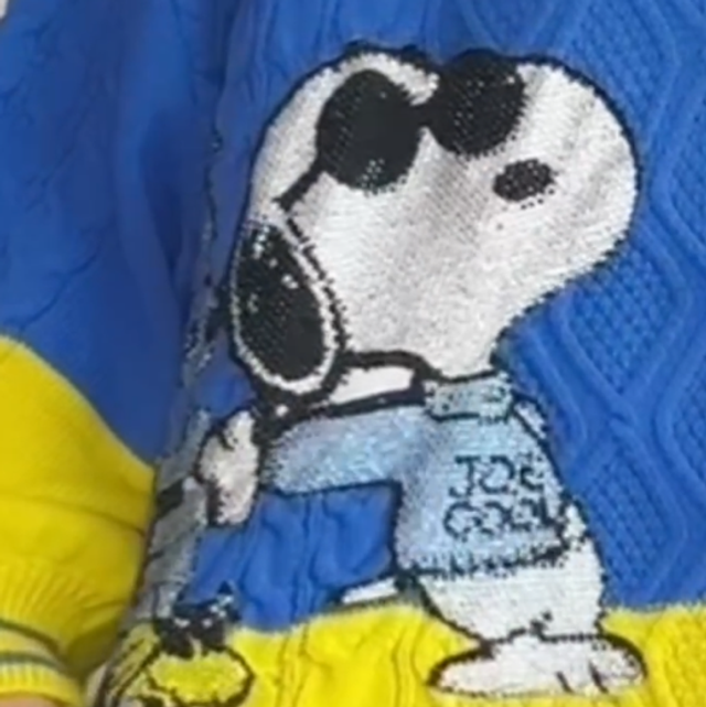 Mega Übergangspullover mit schöner „Snoopy“-Applikation aus Glassteinchen. Zweifarbig in tollen Farben. In Kastenform mit Rundhalsausschnitt. Weit geschnitten - auch für größere Größen sehr gut passend. Vorderansicht in Rauten-Zopfstrickmuster-Mix. Rücken glatt rechts gestrickt.