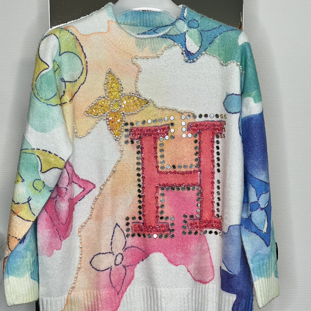 Lieblingspulli im wunderschönen Farbmix mit Perlen und Pailetten z. T. Spiegelpailletten