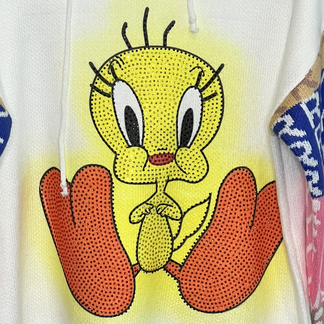 Hingucker sind die Ärmel sowie Twetty komplett aus Strass-Steinen….