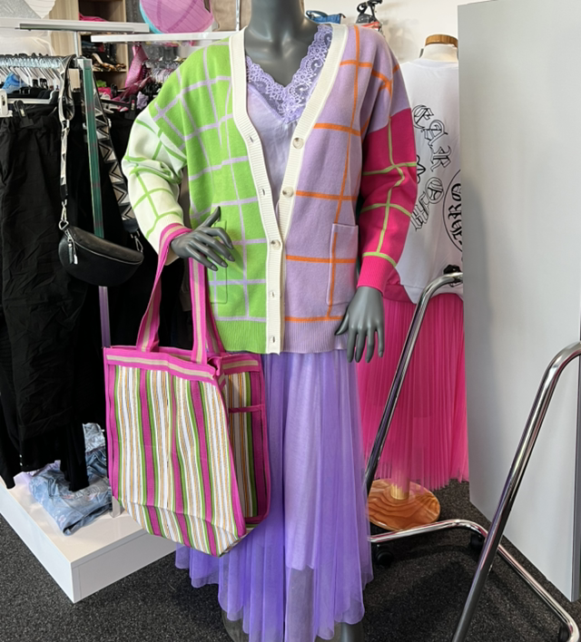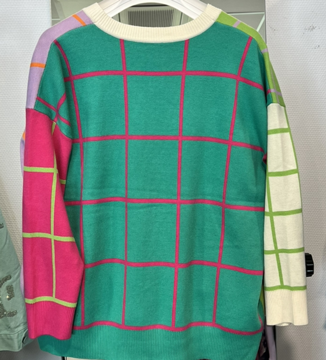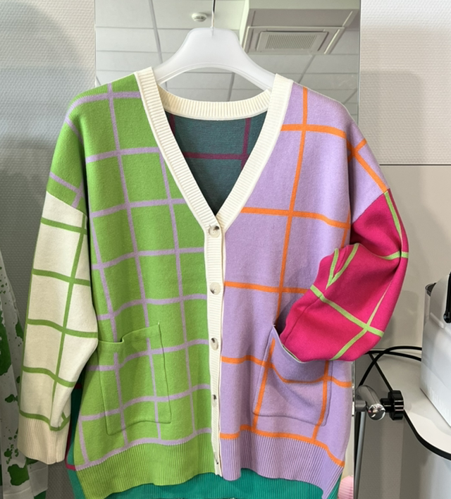 Stylischer Cardigan mit auffälligem Karomuster in leuchtenden Farben und einem modernen, asymmetrischen Design. Der V-Ausschnitt und die Knopfleiste verleihen dem Look eine klassische Note, während die aufgesetzten Taschen funktionale Akzente setzen. Perfekt für farbenfrohe Freizeitoutfits und ein echter Hingucker. Erhältlich in zwei frischen Farbkombinationen – ein Must-have für deinen Kleiderschrank!
