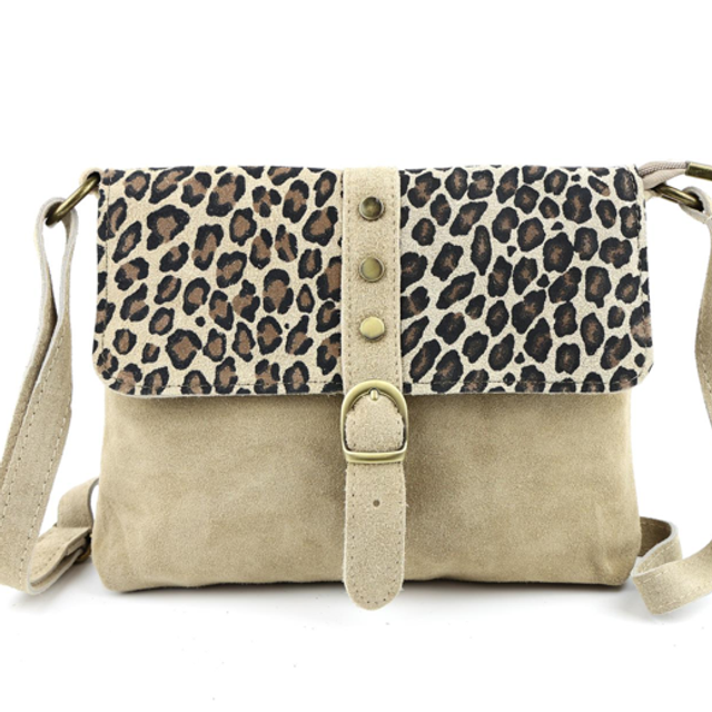 Stylische Leo-Wildleder-Umhängetasche mit modernem Animal-Print-Design. Sie verfügt über ein Hauptfach mit Reißverschluss, ein Innenfach mit Reißverschluss, ein kleines Reißverschlussfach auf der Rückseite und einen praktischen Magnetverschluss. Die perfekte Kombination aus Funktionalität und Eleganz – ein echter Blickfang für jeden Anlass.